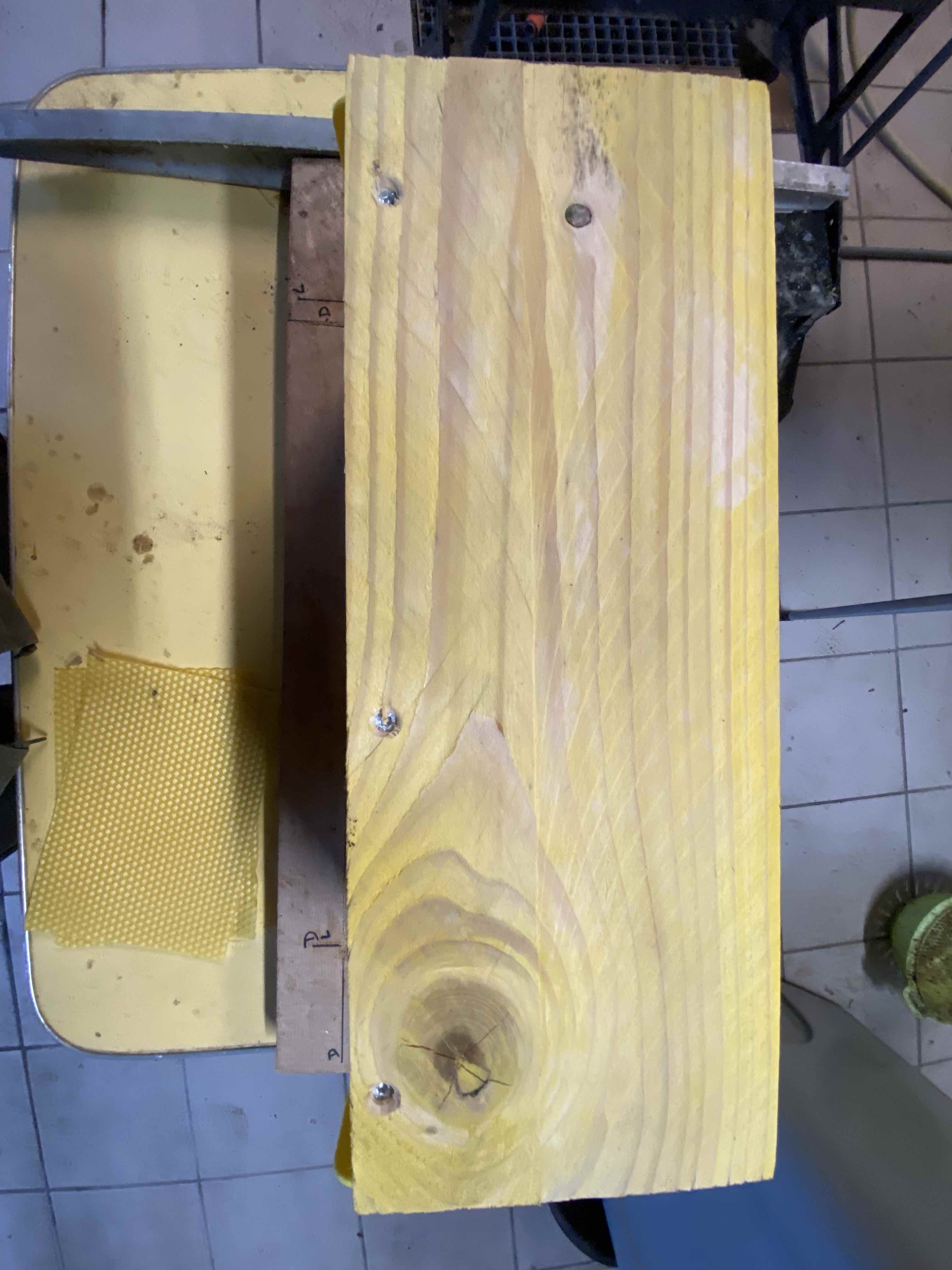Prendre 3 planches de coffrage (ou récupération) et les assembler en U. Poser les grilles sélectives en plastique un peu plus bas que le bois permettant au piège de ne pas reposer sur le bois mais sur les 2 grilles en plastique de chaque côté.