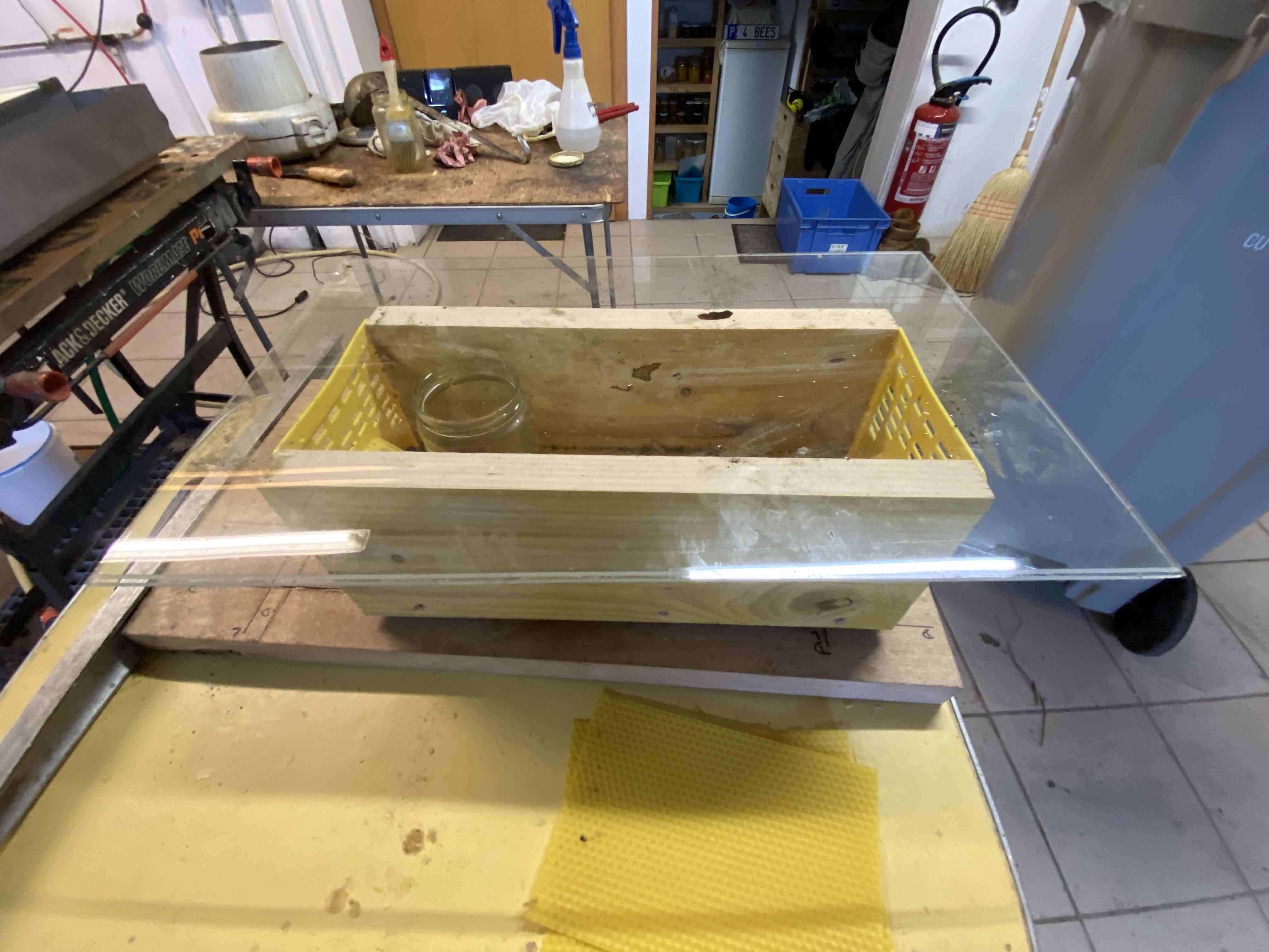 Mettre sur le dessus une vitre qui était une ancienne d'étagère de congélateur (récupérée sur un vieux congélateur ou en déchetterie ou chez une verrier?).